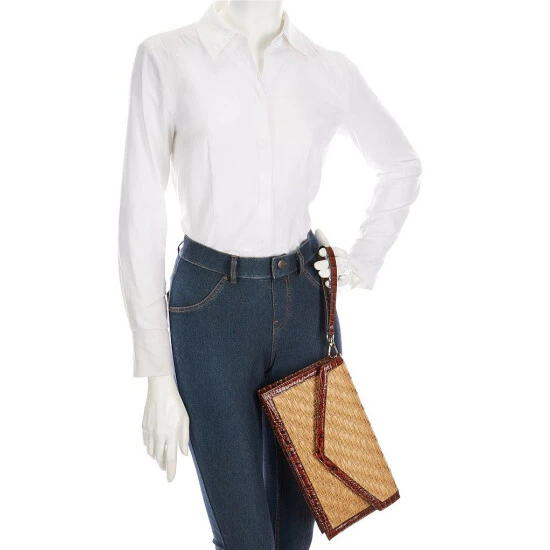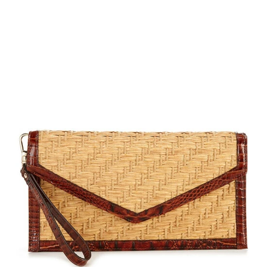 From the Chatham Collection by BRAHMIN, the Straw Kaia Clutch features: