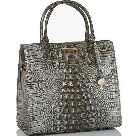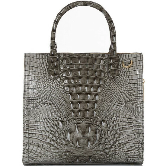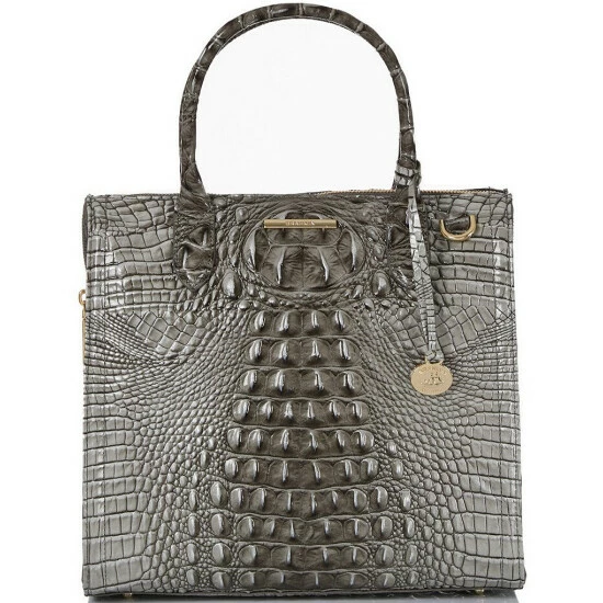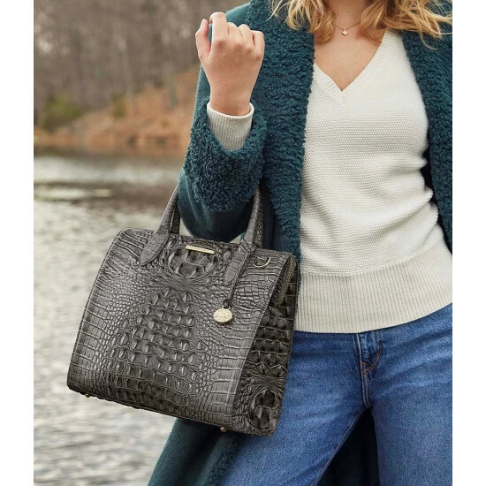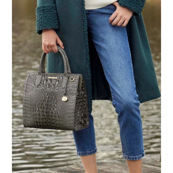 From the Melbourne Collection by BRAHMIN, the Caroline Crocodile-Embossed Satchel Bag features:
