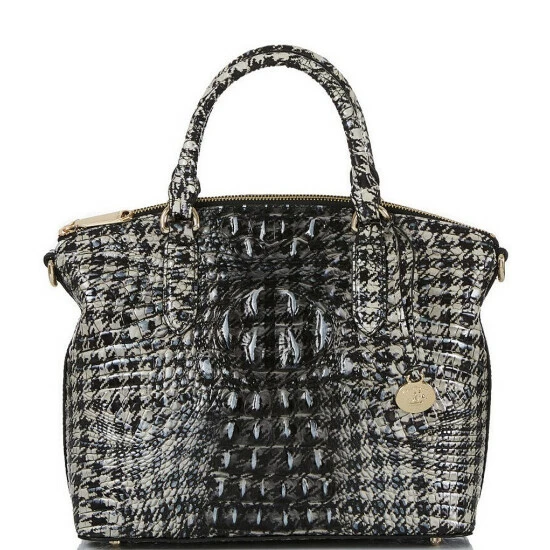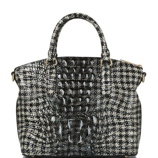From the Melbourne Collection by BRAHMIN, the Houndstooth Duxbury Satchel Bag features: