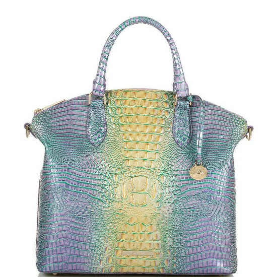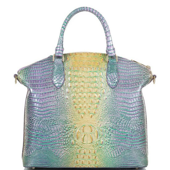 From the Melbourne Collection by BRAHMIN, the Large Duxbury Crocodile-Embossed Dome Satchel Bag features: