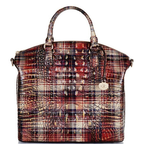 From the Melbourne Collection by BRAHMIN, the Large Plaid Leather Duxbury Satchel Bag features: