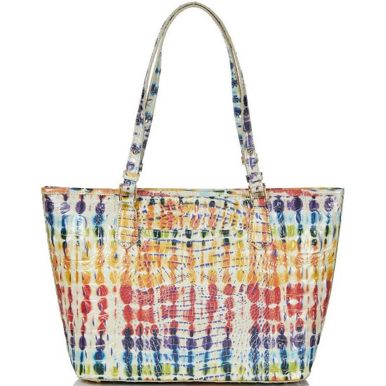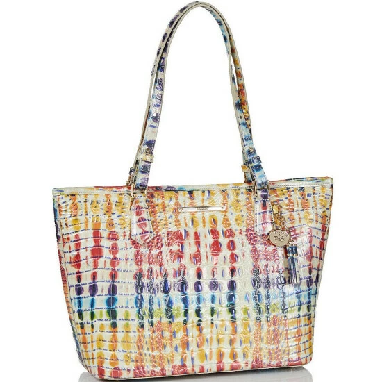 From the Melbourne Collection by BRAHMIN, the Medium Asher Rainbow Print Tote Bag features: