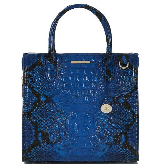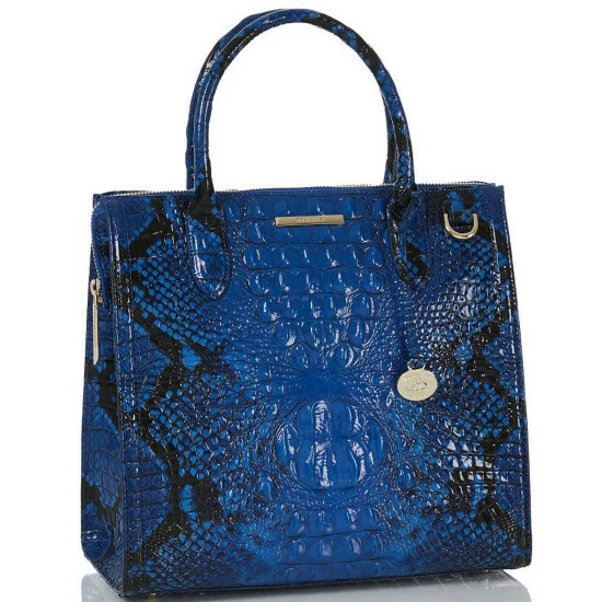 From the Ombre Melbourne Collection by BRAHMIN, the Caroline Blue Viper Snake Print Leather Satchel Bag features: