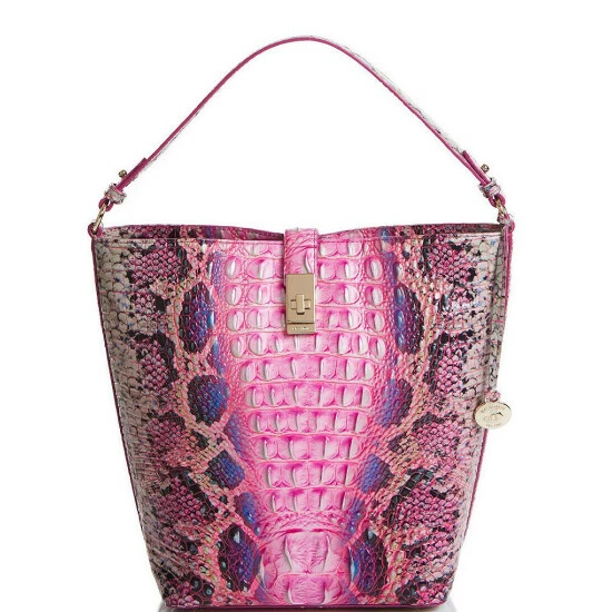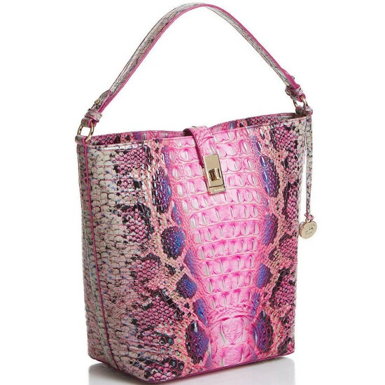 From Ombre Melbourne Collection by BRAHMIN, the Shira Snake Print Bucket Bag features: