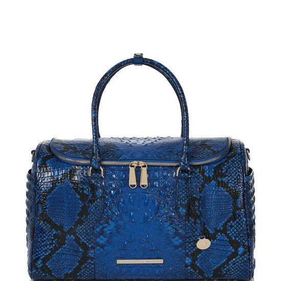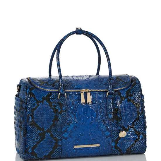 From the Ombre Melbourne Collection by BRAHMIN, the Talulla Blue Viper Snake Print Leather Weekender Bag features: