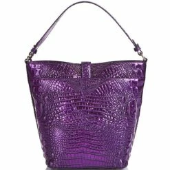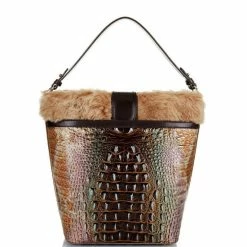Discount ⌛ BRAHMIN Melbourne Collection Shira Crocodile Embossed Bucket Bag Flannel ????