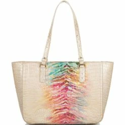 Best deal ✔️ BRAHMIN Melbourne Collection Ashlee Blue Rainbow Print Leather Tote Bag Blue Ammolite ⭐