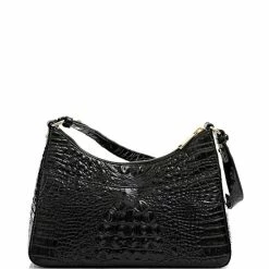Deals ???? BRAHMIN Melbourne Collection Esme Crocodile-Embossed Leather Shoulder Bag Black ✔️