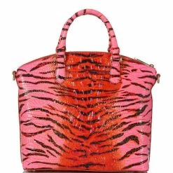 Wholesale ❤️ BRAHMIN Ombre Melbourne Collection Large Duxbury Animal Print Satchel Bag Pink Feline ⌛