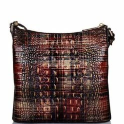 Discount ⌛ BRAHMIN Melbourne Collection Shira Crocodile Embossed Bucket Bag Flannel ????