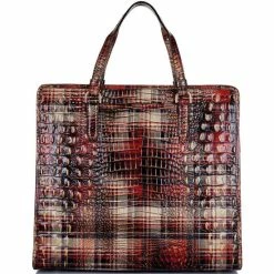 Promo ???? BRAHMIN Melbourne Collection Large Plaid Leather Duxbury Satchel Bag Flannel ????
