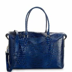 Outlet ⭐ BRAHMIN Melbourne Collection Small Caroline Crocodile Embossed Satchel Bag Sapphire ????